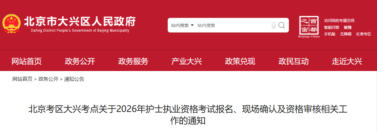 為做好2026年度護(hù)士執(zhí)業(yè)資格考試報名工作,現(xiàn)將北京考區(qū)大興考點具體工作安排通知如下: