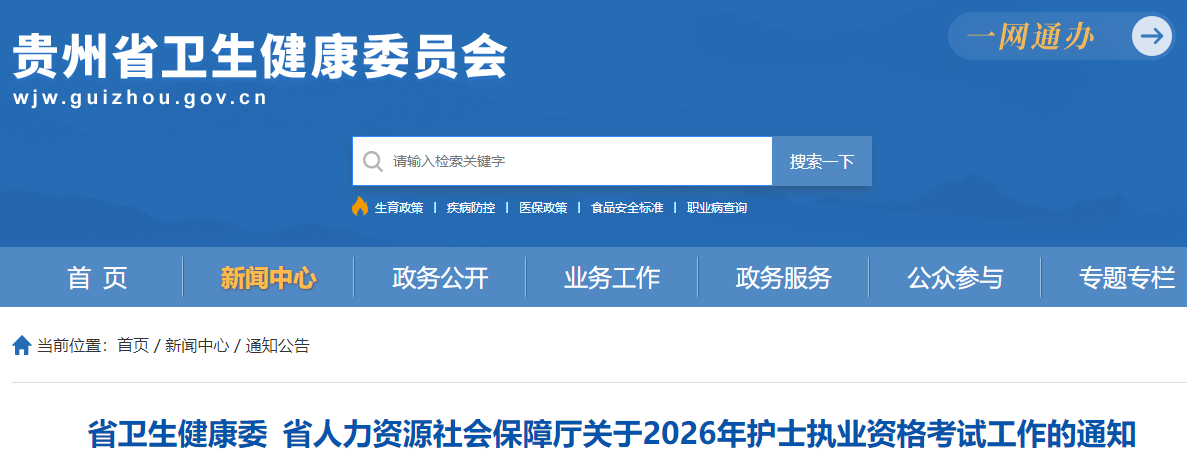 貴州省2026年護士執(zhí)業(yè)資格考試工作的通知