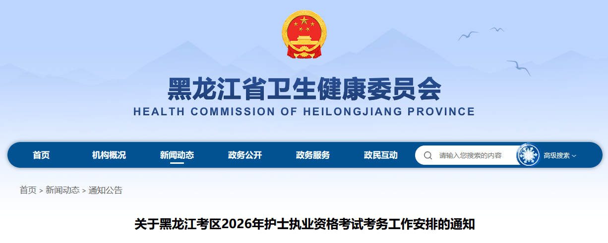 黑龍江考區(qū)2026年護(hù)士執(zhí)業(yè)資格考試通知
