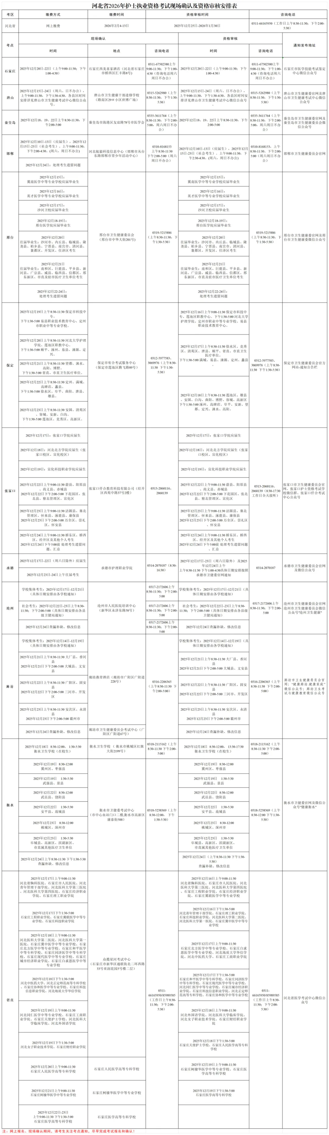 附件:河北省2026年護士執(zhí)業(yè)資格考試現(xiàn)場確認及資格審核安排表