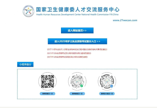 即日起,2025年護(hù)士執(zhí)業(yè)資格考試成績(jī)開(kāi)放查詢,考生可登錄國(guó)家衛(wèi)生健康委人才交流服務(wù)中心網(wǎng)站進(jìn)行查詢。
