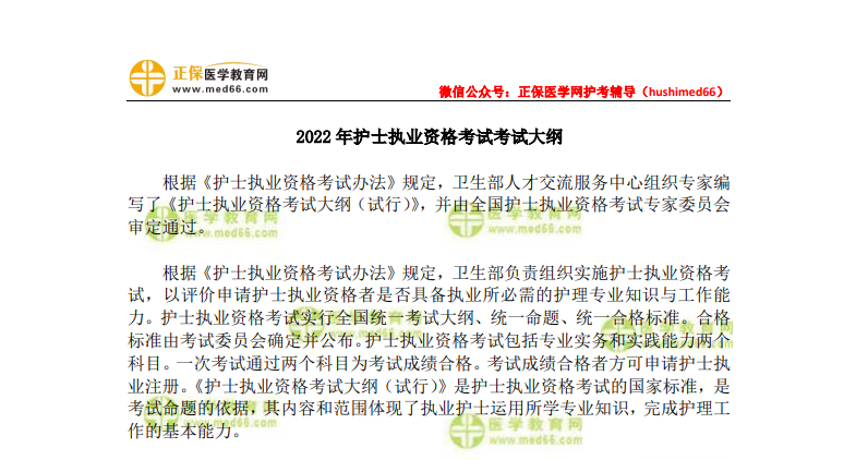 2022年護(hù)士執(zhí)業(yè)資格考試大綱下載看這里!很多考生對考試大綱的下載還不太清楚,醫(yī)學(xué)教育網(wǎng)小編貼心地整理了相關(guān)內(nèi)容,希望對各位考生有幫助。
