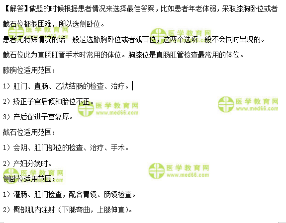 2.【問題】老師您好,請問肛門檢查可以是側(cè)臥位、膝胸位和截石位,我們做題的時(shí)候要怎么區(qū)分?
