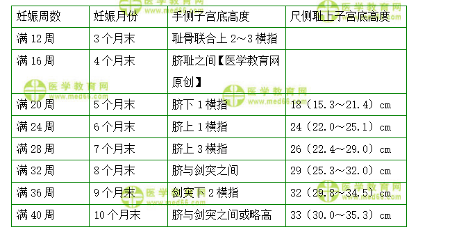 2.【問(wèn)題】不同妊娠周數(shù)的子宮底高度及子宮長(zhǎng)度?