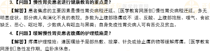 3.【問題】慢性胃炎患者進(jìn)行健康教育的重點(diǎn)是?