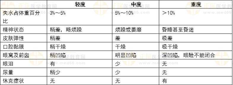 【解答】不同程度的脫水的臨床表現(xiàn)如下,可通過皮膚彈性、尿量和精神狀態(tài)等進(jìn)行區(qū)分。