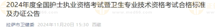 拉薩市2024年護士執(zhí)業(yè)資格考試合格標(biāo)準(zhǔn)及辦證公告