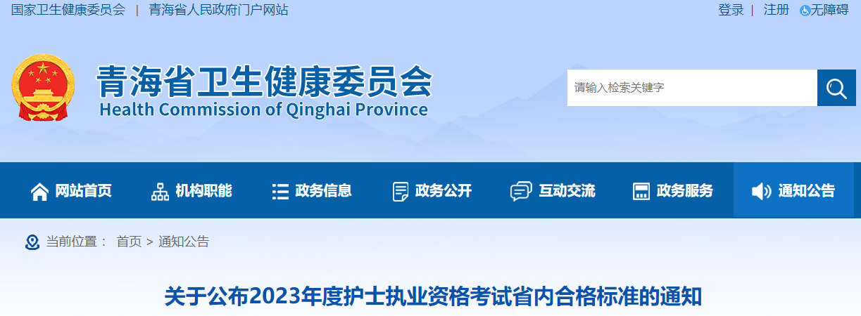 青海省2023年度護(hù)士執(zhí)業(yè)資格考試省內(nèi)合格標(biāo)準(zhǔn)的通知