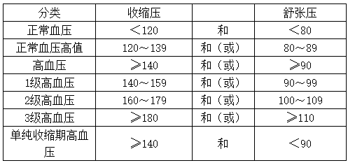血壓水平分類和定義表格總結(jié)