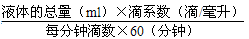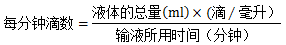 毎分鐘滴數(shù)=【液體的總量(ml)×滴系數(shù)(滴/毫升)】÷輸液所用時(shí)間(min)