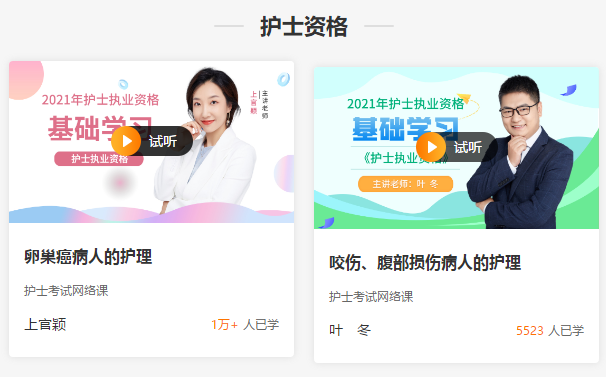 備考2022年護士執(zhí)業(yè)資格考試的同學都在找的2022護士資格考試輔導視頻,小編給各位考生找來咯!醫(yī)學教育網(wǎng)小編為大家?guī)砹嗣赓M的護士資格考試基礎(chǔ)學習課程,快來看看吧!