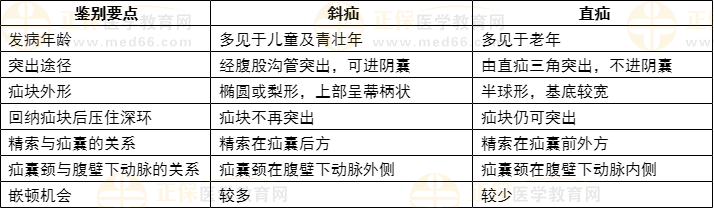 【答案解析】斜疝、直疝的臨床表現與鑒別: