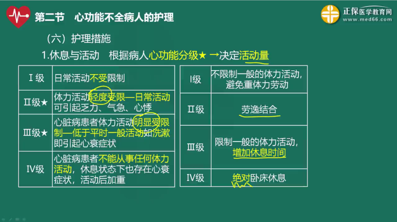【護(hù)士執(zhí)業(yè)資格】心功能不全——分級(jí)、休息與活動(dòng)