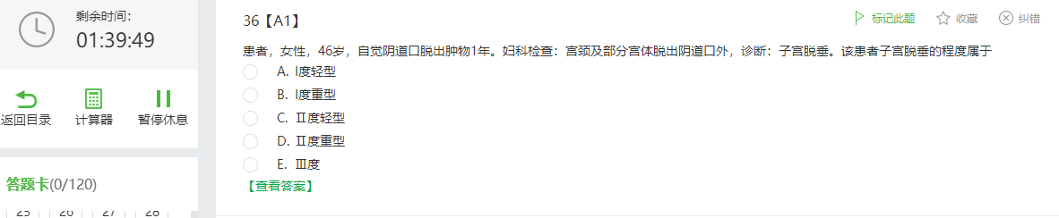 輕型:宮頸脫出陰道口,宮體仍在陰道內(nèi)。