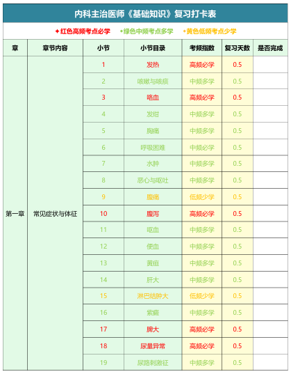 《三色復(fù)習(xí)打卡表》是一款專為備戰(zhàn)2026年護(hù)士資格考試而設(shè)計(jì)的高效復(fù)習(xí)幫手!它將考試知識(shí)點(diǎn)按照出題頻率劃分為三個(gè)等級(jí):