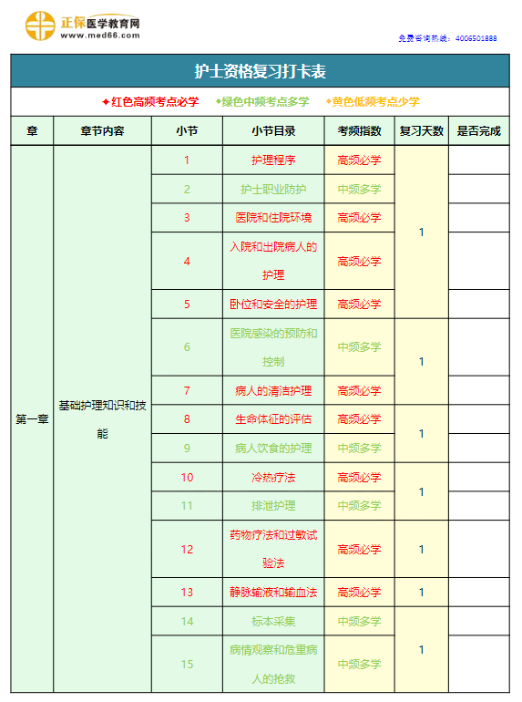 2026年護(hù)士資格《三色復(fù)習(xí)打卡表》0元領(lǐng)??!科學(xué)規(guī)劃備考!