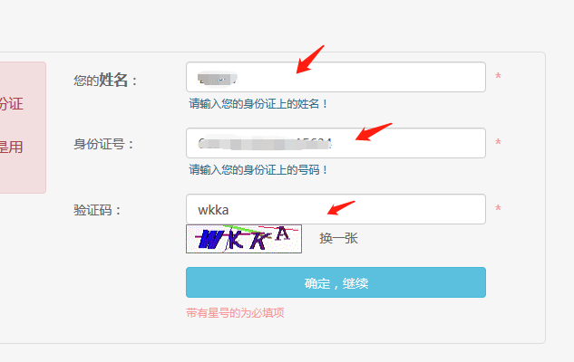 三、填寫自己的身份證姓名,身份證號(hào)和驗(yàn)證碼。
