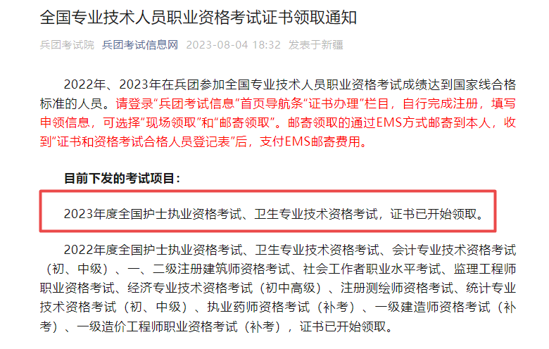 新疆兵團(tuán)2023年護(hù)士資格考試證書開始領(lǐng)?。?/h1>