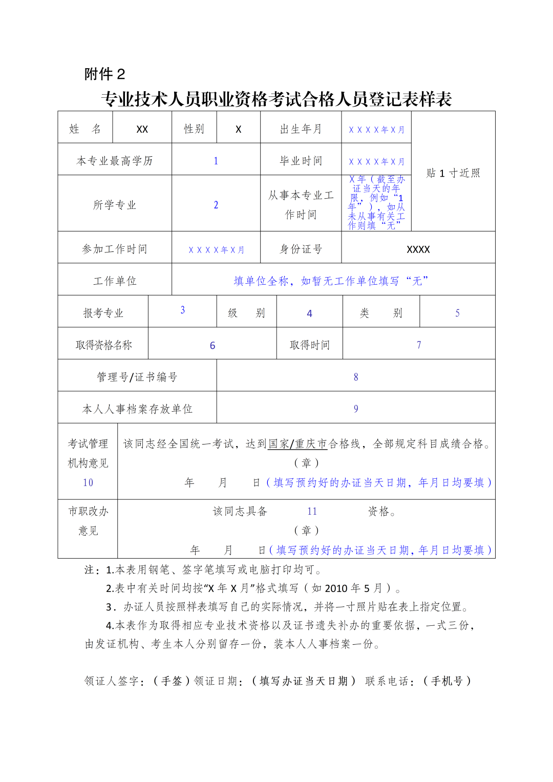 ② 專業(yè)技術(shù)人員職業(yè)資格考試合格人員登記表樣表(請務(wù)必仔細查看藍色字體的填表說明)