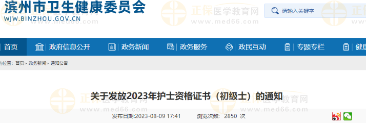 濱州市關(guān)于發(fā)放2023年護(hù)士資格證書的通知