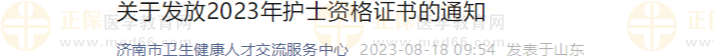 濟南市關于發(fā)放2023年護士資格證書的通知