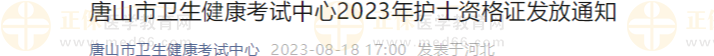 唐山市2023年護(hù)士資格證發(fā)放通知
