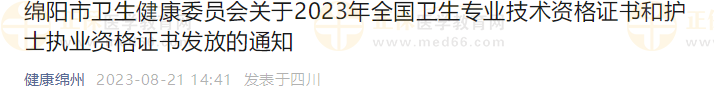 綿陽市關(guān)于2023年護(hù)士執(zhí)業(yè)資格證書發(fā)放的通知