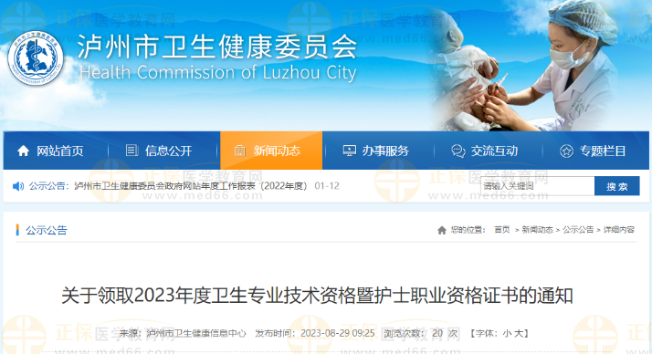 瀘州市關(guān)于領(lǐng)取2023年護(hù)士職業(yè)資格證書(shū)的通知