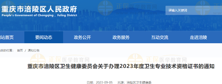 重慶市涪陵區(qū)衛(wèi)生健康委員會關(guān)于辦理2023年度衛(wèi)生專業(yè)技術(shù)資格證書的通知公布啦!醫(yī)學(xué)教育網(wǎng)整理具體內(nèi)容如下: