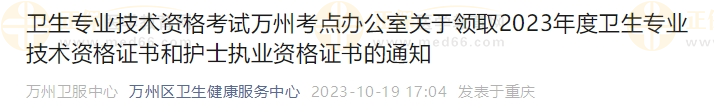 重慶萬(wàn)州區(qū)關(guān)于領(lǐng)取2023年護(hù)士執(zhí)業(yè)資格證書的通知