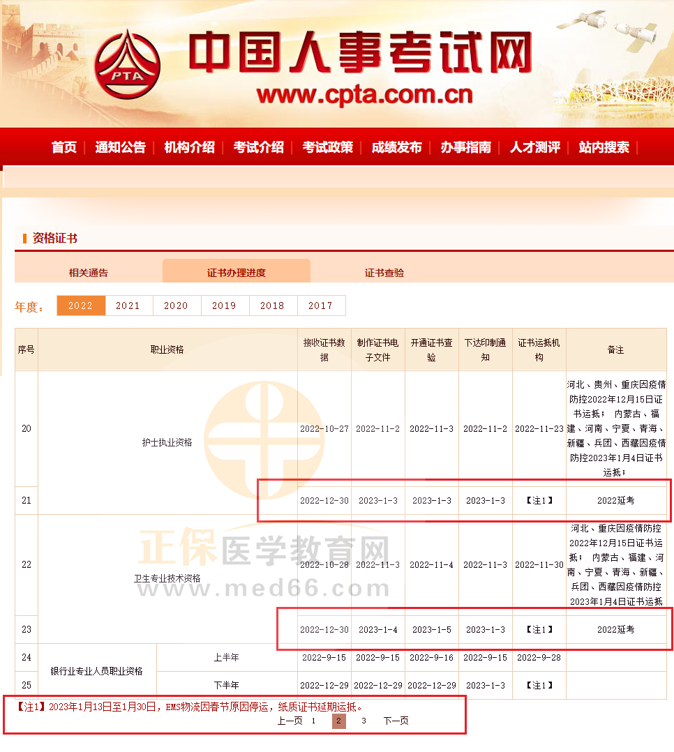 【注1】2023年1月13日至1月30日,EMS物流因春節(jié)原因停運(yùn),紙質(zhì)證書延期運(yùn)抵。