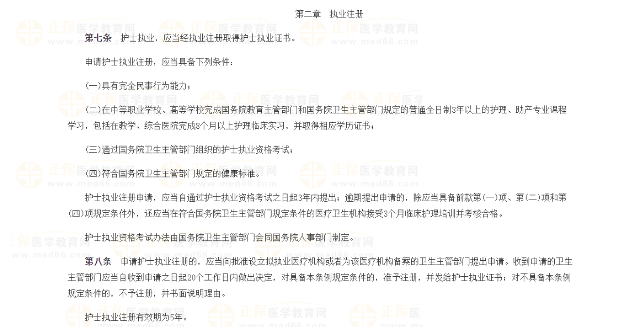 第七條 護(hù)士執(zhí)業(yè),應(yīng)當(dāng)經(jīng)執(zhí)業(yè)注冊(cè)取得護(hù)士執(zhí)業(yè)證書。