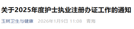青海玉樹2025年度護(hù)士執(zhí)業(yè)注冊(cè)辦證工作的通知