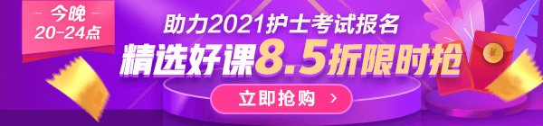 今晚(13日)20:00-24:00購買2021護(hù)士考試輔導(dǎo)高效定制班、無憂實(shí)驗(yàn)班享受8.5折特惠,限時(shí)4個(gè)小時(shí),想跟著網(wǎng)校專業(yè)老師一起備戰(zhàn)沖刺2021護(hù)士考試的各位考生請(qǐng)千萬不要錯(cuò)過!