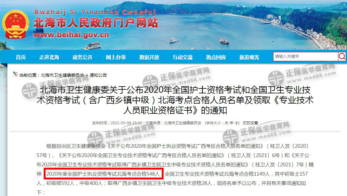 是不是覺得這個(gè)通過率還可以?但是注意!這個(gè)通過率只是廣西桂林市級的通過率,可以參考一下,廣西北海市2020護(hù)士資格考試合格人員只有548人,綜合一下,2020護(hù)士資格考試通過率不足60%!