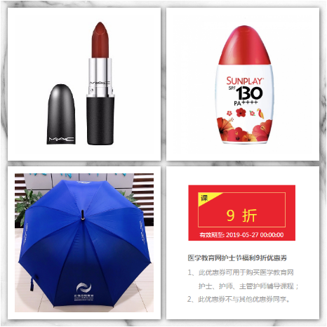 MAC口紅、防曬霜、雨傘、醫(yī)學(xué)教育網(wǎng)2020護士、護師、主管護師課程優(yōu)惠券都給各位安排上了,是不是很貼心?你的需求,我們都懂。