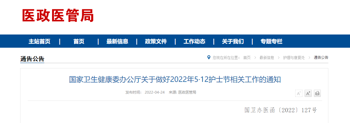《國家衛(wèi)生健康委辦公廳關(guān)于做好2022年5·12護(hù)士節(jié)相關(guān)工作的通知》