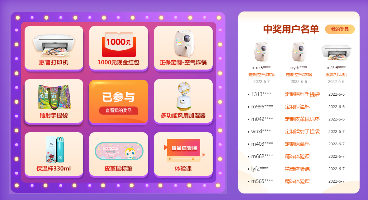 2.活動(dòng)規(guī)則:活動(dòng)期間每人可抽獎(jiǎng)一次,中獎(jiǎng)情況可在“我的中獎(jiǎng)記錄”中查看。具體規(guī)則>>