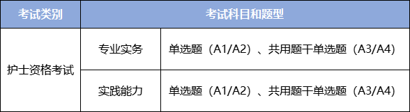 護(hù)士資格考試試題均為客觀題,采用計(jì)算機(jī)統(tǒng)一評(píng)分。考試題型如下表: