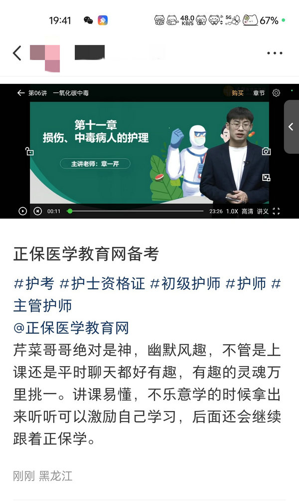 芹菜哥哥絕對是神,風趣幽默,不管是上課還是平時聊天都好有趣,有趣的靈魂萬里挑一。講課易懂,不樂意學的時候拿出來聽聽可以激勵自己學習,后面還會繼續(xù)跟著正保醫(yī)學教育網(wǎng)學。