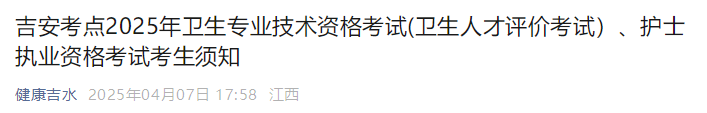 【江西吉安】2025年護(hù)士執(zhí)業(yè)資格考試考生須知