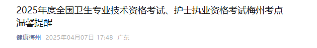 【廣東梅州】2025年護(hù)士執(zhí)業(yè)資格考試溫馨提醒