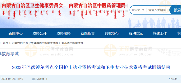 內(nèi)蒙古自治區(qū)衛(wèi)生健康委員會發(fā)布2023年巴彥淖爾考點(diǎn)全國護(hù)士執(zhí)業(yè)資格考試和衛(wèi)生專業(yè)技術(shù)資格考試圓滿結(jié)束通知,醫(yī)學(xué)教育網(wǎng)整理具體內(nèi)容如下: