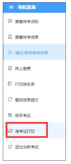 在左側(cè)導(dǎo)航欄選擇“準(zhǔn)考證打印”。