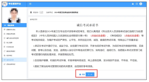 認(rèn)真閱讀《誠信考試承諾書》,勾選“同意”,點擊“下一步”。