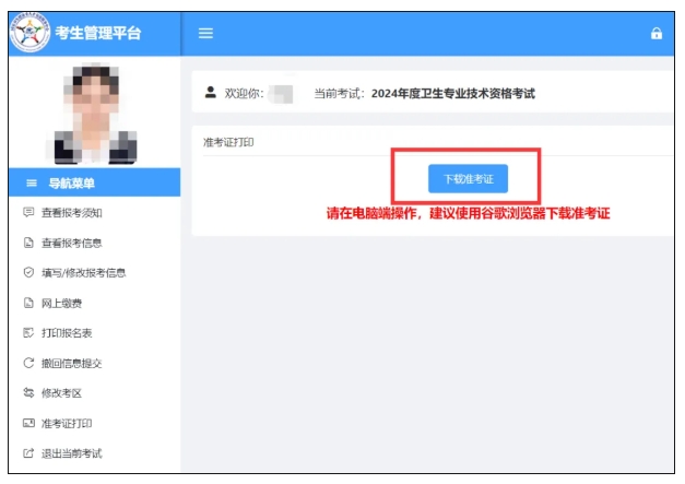 點擊“下載準(zhǔn)考證”,并妥善保存。(請在電腦端操作,建議使用谷歌瀏覽器)