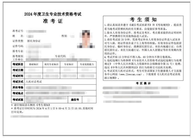 (衛(wèi)生專業(yè)技術(shù)資格考試準(zhǔn)考證圖例)