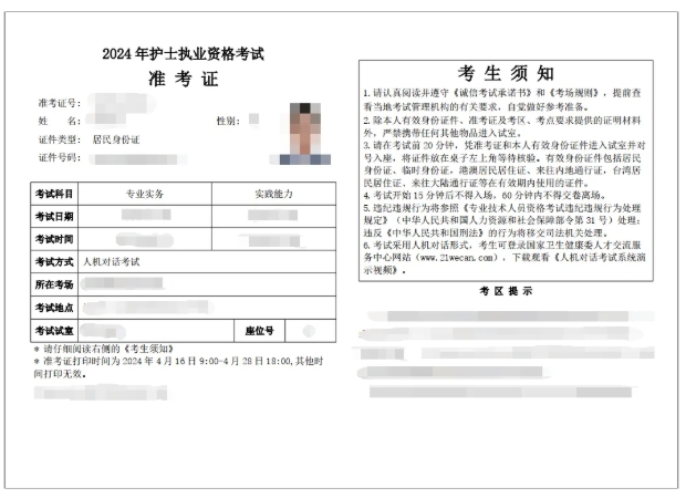 (護士執(zhí)業(yè)資格考試準(zhǔn)考證圖例)