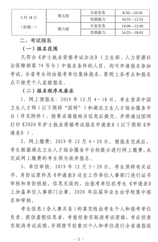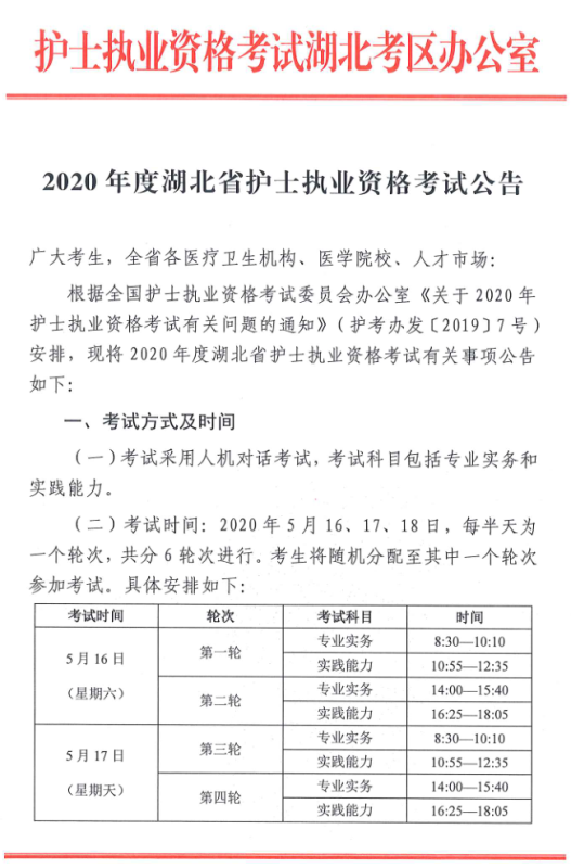 2020年湖北省護(hù)士執(zhí)業(yè)資格考試安排