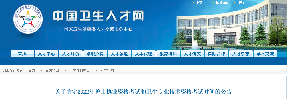 中國衛(wèi)生人才網(wǎng)發(fā)布了關(guān)于確定2022年護士執(zhí)業(yè)資格考試和衛(wèi)生專業(yè)技術(shù)資格考試時間的公告,2022年護士執(zhí)業(yè)資格考試時間如下: